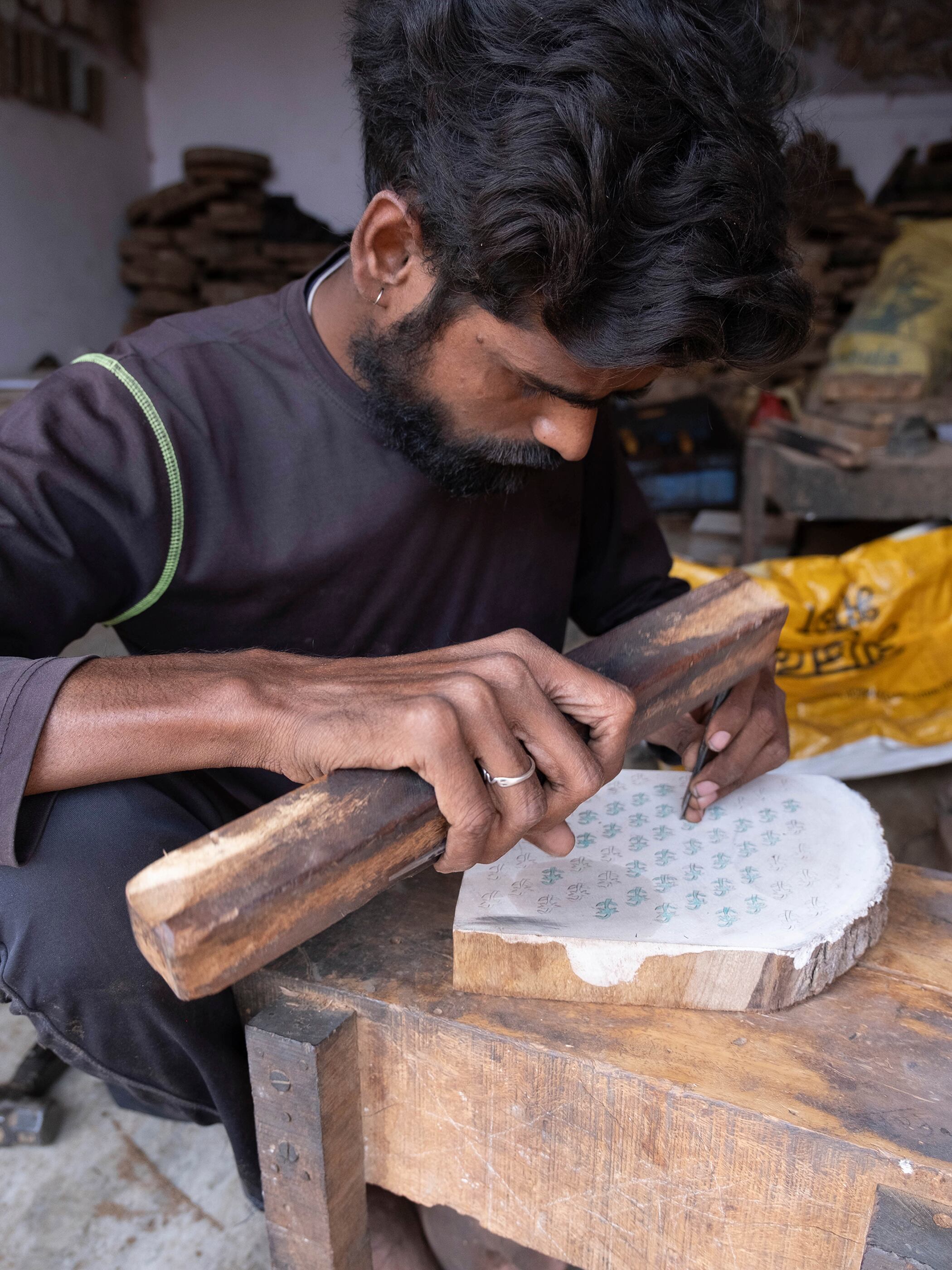 木版を使った手作業による伝統的な技法「ブロックプリント」で、一枚一枚丁寧に仕上げています。