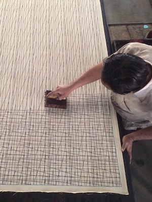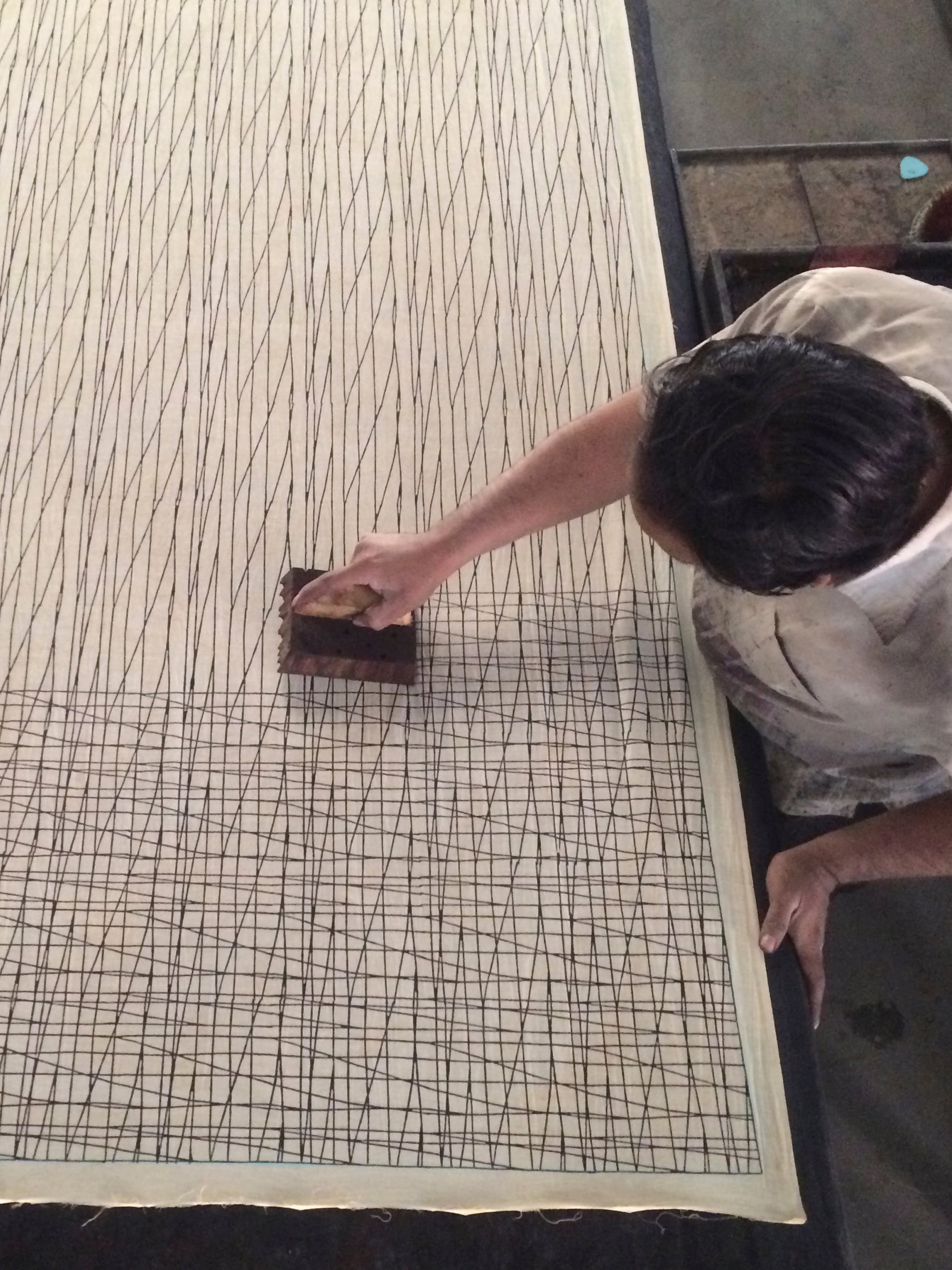 Ink spills and splashes on the cloth become a part of the printing process, making the most beautiful looks in all their perfections and flaws. I hope you love and enjoy the craftsmanship.